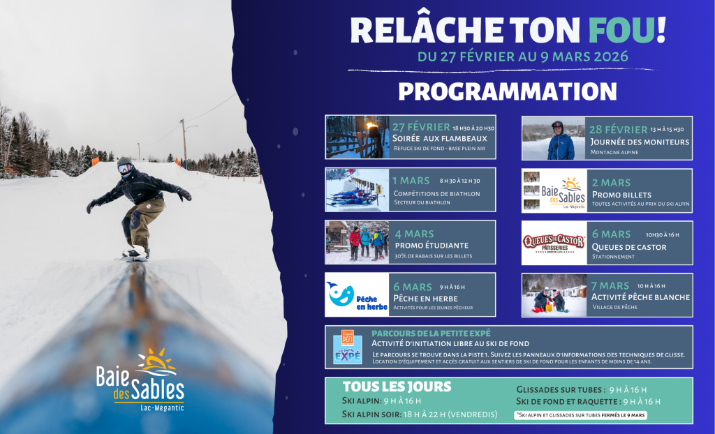 Venez vous amuser à la station lors d’une journée spéciale ou dans l’une des nombreuses activités offertes tous les jours de la semaine de relâche!
